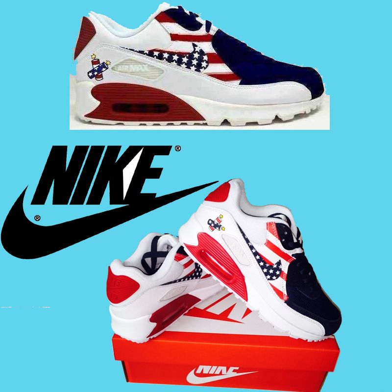 Nike Air Max 90 Men Running Shoes Red Black American Flag Patter ...